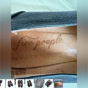 Free People Penny Loafers Genuine leather block heels black brown shoes 38 8
