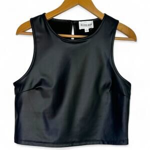 Olive + Oak Women's Sleeveless Cropped Faux Leather Top L Black Vegan Leather