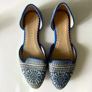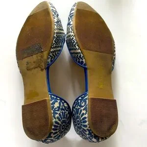 Elegant Restricted Blue Floral and Cream Women's Loafers Flats