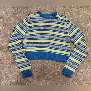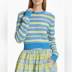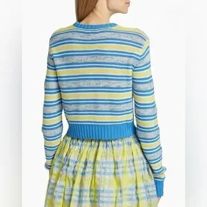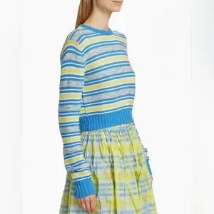 Cut in a cropped silhouette, Rosie Assoulin's knit cotton sweater is decorated with a colorblocked striped pattern and banded ribbed trim.