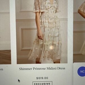 This dress by Needle and Thread was purchased along with four three others as a possible wedding dress to try on. The intent was to return it if it did not fit. The company would not accept it back because the time had expired after my honeymoon. I chose a different dress that fit me better. But I love this dress! It is flowy and elegant and makes you feel so pretty. The colors are timeless. The design is modern and traditional at the same time.