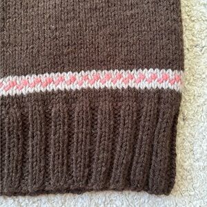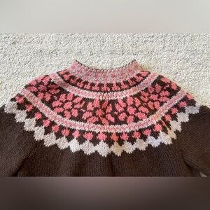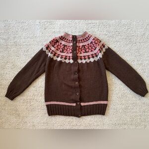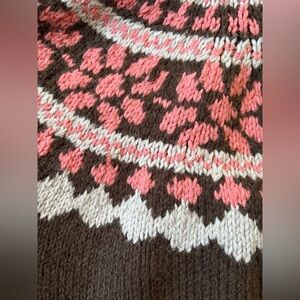 Handmade Scandinavian style wool sweater. Brown and pink. Fits M/L. Buttons in front.