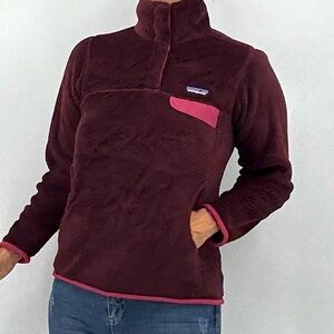 Stay cozy with this Patagonia fleece sweater. Style is Re-Tool Snap -T Better Sweater. Deep pile fleece for warmth retention. Stand up collar has double fleece and hidden snap buttons. Chest pocket with signature logo patch. Kangaroo front pockets. Size XS. Great condition. Please see photos for measurements.