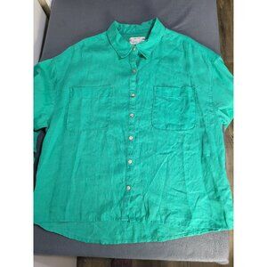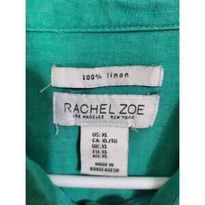 Rachel Zoe Women's XL Green 100% Linen Button Up Long Sleeved Blouse