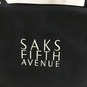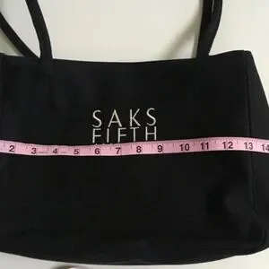 SAKS FIFTH AVENUE Black Tote BAG Purse Handbag Embroidered Logo Y2K NEW