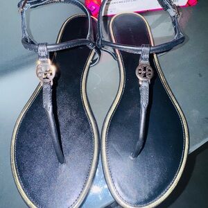 Step into refined comfort with Tory Burch's Emmy sandals in perfect black leather-perfect for warm days and stylish nights