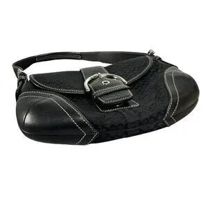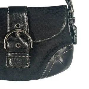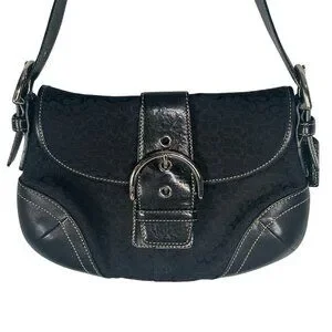 Coach 6818 SMALL Vintage Soho Black Leather and Signature C Canvas Shoulder Bag