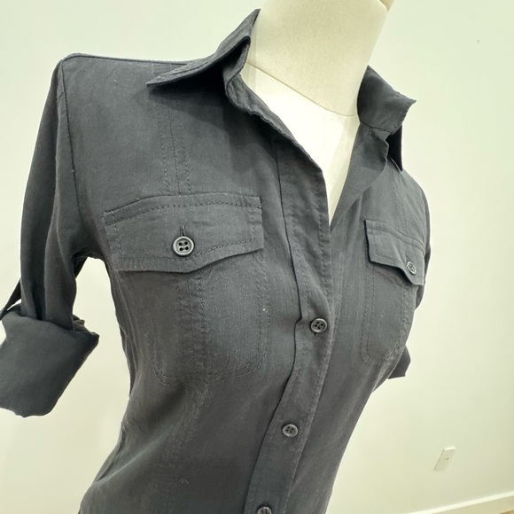 Theory Button down Long Tab Sleeve Dress Black Size 0