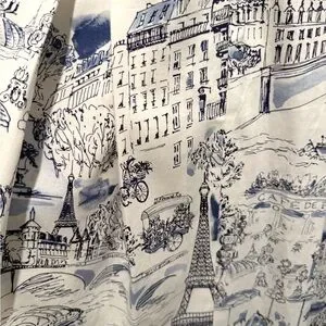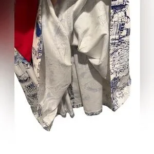 • Full Flare Blue & White Pleated Paris Print Skirt