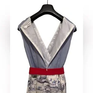 Chetta B EUC Size 6 Blue & White Paris Themed Sleeveless Retro Mini Dress (0676)