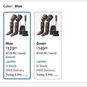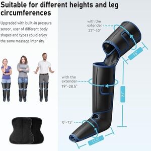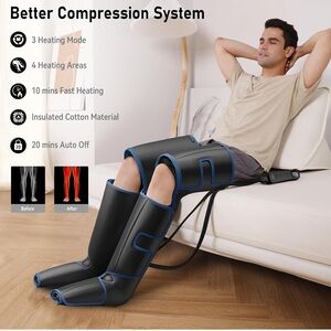 This is a Leg Massager for better circulation and pain relief. It’s a Full Leg Compression Massager with Heat, 2 extenders, 3 Heat Modes, and 3 Intensity Modes for Leg Cramps, Edema and Swelling. In the color blue.