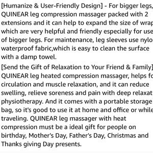 NEW QUINEAR ELECTRONIC AIR LEG COMPRESSION LEG MASSAGER WITH HEAT