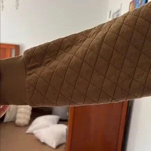 Stylish tan quilted pullover with a half-zip design. Perfect for casual wear. Excellent condition.