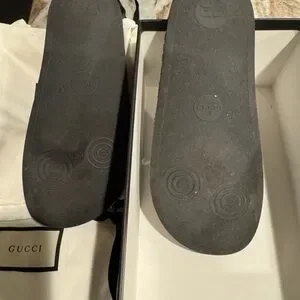 Barely worn Black Gucci slides. Size 38. They run a little tight so probably fit a 7/7.5. Comes with dust bag and box. Serial number is: 57922-38-160