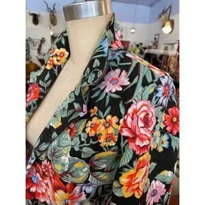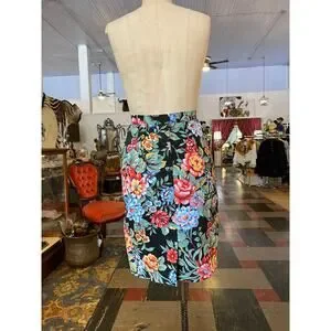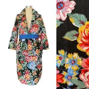 1980s denim skirt and jacket bright flower print 80s fashion 2 piece jean sm