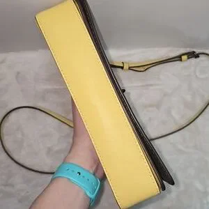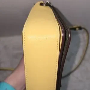 EUC light yellow genuine glovetanned leather Coach x Disney 'A Dark Fairy Tale' Dinky crossbody/clutch. This style is presented in a vintage style from Coach & was limited edition. It is missing the original hangtag. However, I added a yellow leather Coach hangtag. There is one minor scuff on the right edge of the bag. It is pictured. No other exterior flaws. No stains, rips or odors. The leather crossbody strap is in excellent condition. It is adjustable & detachable. The back exterior slip pocket is leather lined. No flaws or odors inside. This bag has a turnlock closure. There are 2 compartments inside. Both are in excellent condition. No flaws or odors. Dark green leather lined. The second compartment has 1 kisslock pocket & key clip. This crossbody bag was made in January 2018. Style #F32757. 9"L x 5"H. 49"L crossbody strap.