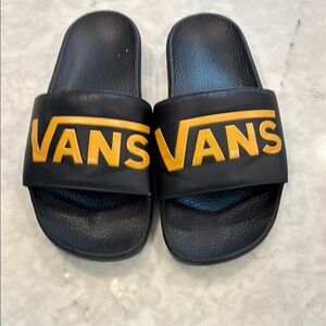 Vans Black Slides with Yellow Logo
