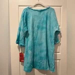 NWT Oh My Gauze! M (Size 2) Blue Tie Dye Suzi Washed Cotton Tunic. It measures 21” across the chest and 30” in length. Has side slits.🩵🩵🩵