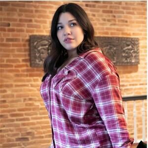 Amazon women long sleeve button down plaid shirt cut out back plus size curvy 1X