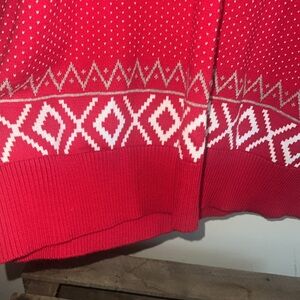 Stay warm and stylish with this red and gray men's sweater, featuring a classic pattern. Perfect for any casual occasion.