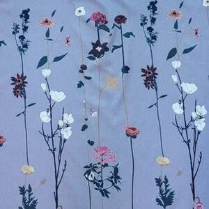 Pretty gray tunic with flowers; lightweight, sleeveless, split side seams.