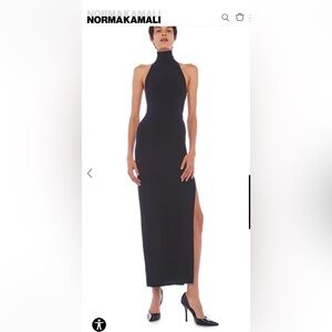 Norma Kamali Halter Turtle Side Slit Gown Black, M