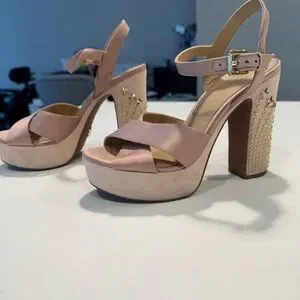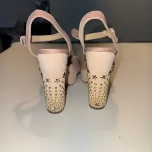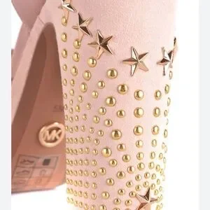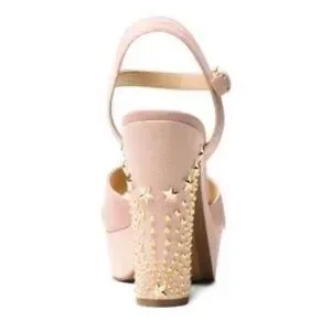 Stylish blush platforms with gold star accents. Perfect for adding elegance to any outfit.