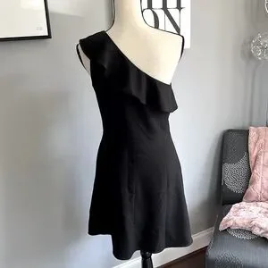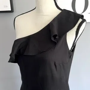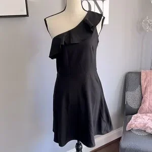 This feminine dress features an a-line silhouette, a ruffled detail one shoulder, and a side zip closure. Perfect dress for a special occasion. No signs of wear.