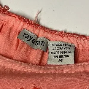 Chic coral mini dress. Delicate floral embroidery. Perfect for summer outings.