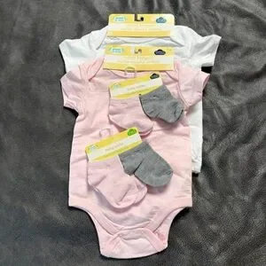 Pink and White Baby One Piece Set with Socks X2 sets