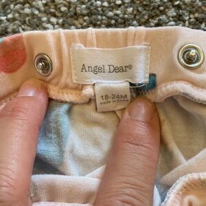 Charming baby outfit by Angel Dear. Features dress with pink and blue cowgirl boots, perfect for a rodeo! 2 sizes of snap closures for easy dressing and matching ruffle bloomers.