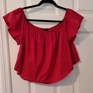Chic crop red blouse with ruffle sleeves. Perfect for casual outings. Great condition.