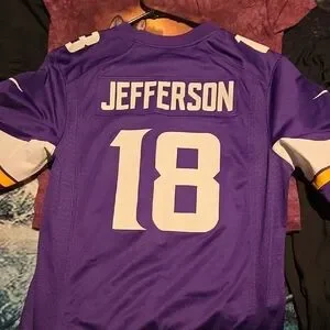 Cheer for the Vikings in this Nike kids jersey. Bold purple with white and yellow accents.
