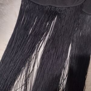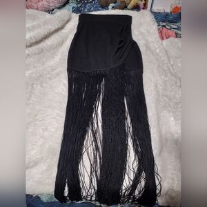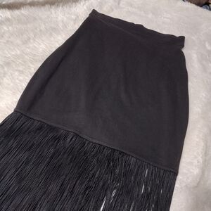 VINTAGE Black Fringe Skirt 90 S_Contempo Casuals SZ Large Stretch/ See Pics Rare