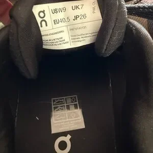 Sleek On Cloud shoes with olive and black design. Waterproof and perfect for active wear. Like new condition. Too big for me. From a smoke free, pet friendly home.
