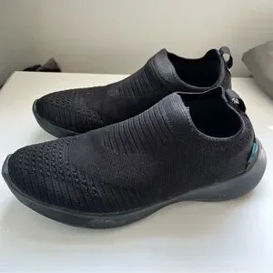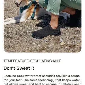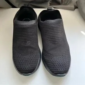 Stylish black knit waterproof design. Slip-on comfort. Perfect for active lifestyle.