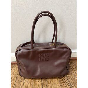 Miu Miu Beau Logo-Debossed Leather Bag Coffee Brown