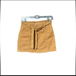 Elevate your autumn wardrobe with this chic American Eagle corduroy mini skirt. The rich camel brown hue and button-front design offer versatile styling options for both casual and dressy occasions. Perfect for coffee dates, campus outings, or weekend brunches. The super stretch fabric ensures comfort, while the belted waist adds a trendy touch. Pair with boots and a cozy sweater for a quintessential fall look that's both fashionable and functional.