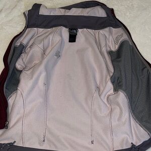 The North Face Womens Red Fleece Windwall Hoodie Jacket Full Zip Zip Pockets xs