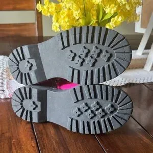 Stylish pink boots with quilted design. Durable sole. Lace-up front.