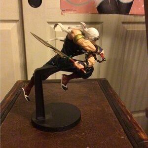 He’s been sitting on a shelf for awhile and has a bit of paint transfer on his left arm, though it’s not visible when the sword is in his hand.