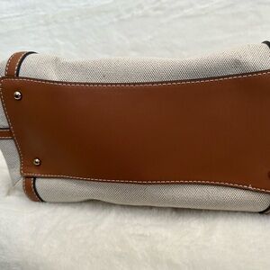 This stylish tote bag features a sophisticated cream and brown design, perfect for any occasion. Its elegant look is complemented by durable materials, making it a must-have accessory.