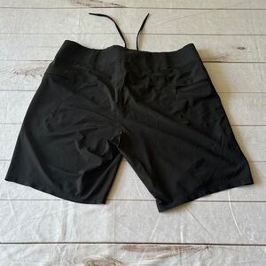 Lululemon men's black board shorts. Criss-cross tie in front. Back pocket with key loop. Comfortable fit. Size 32. EUC.