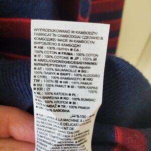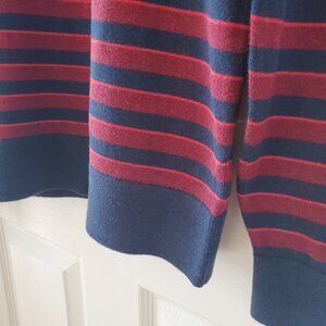 GAP Men's Crew Neck Sweater 100% Cotton Sz Medium Sustainable Office. Striped Navy Blue, Cranberry and a thin stripe of Red. Hardly worn sweater in Excellent condition. Soft, smooth and a substantial weight. Color is most accurate in close up pics. PTP 20" and has some stretch, Length 26", sleeve from top of shoulder seam 26". Thanks for stopping by my closet! Offers always welcome!