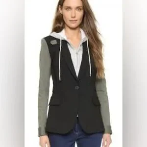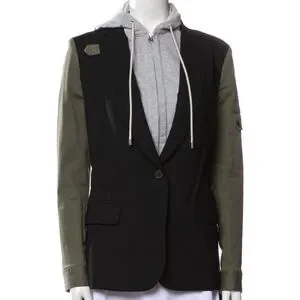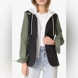Stylish blazer, Features black and olive design. Ideal for versatile wear.