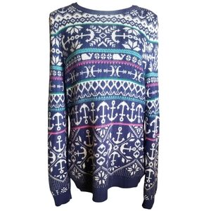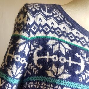 Vineyard Vines Sweater Womens XL Nautical Blue Anchor Pattern Cashmere Pullover