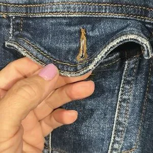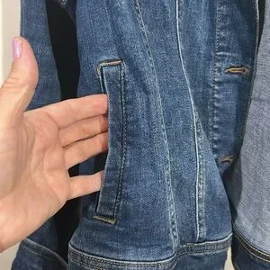 Comfy broken in Jean jacket pockets button front roll sleeves note there is a small mark on front could be treated and removed with proper care see pic before you buy sold as is!