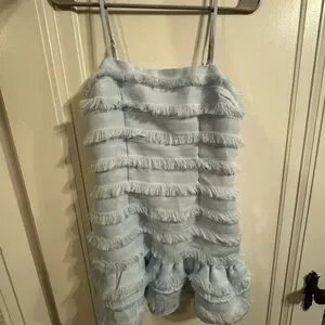 Princess Polly Molina Mini Dress Size 2 Fringe Tiered Flapper Party Light Blue