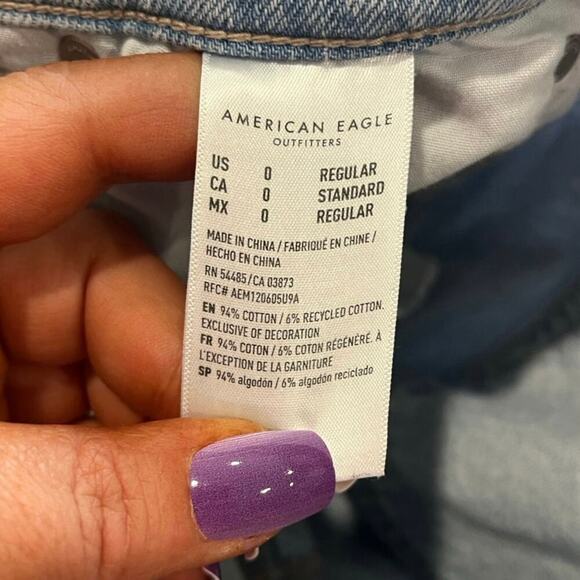 American Eagle 90's Straight Jeans High Rise Rigid Denim Light Wash Blue Size 0