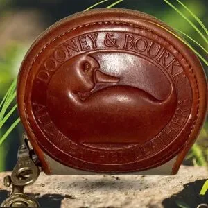 Vintage Dooney Bourke Saddle Brown Big DUCK All Weather Leather Zip Around Coin Purse/ Wristlet